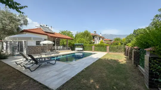 Fethiye Kayaköy mevkiide bulunan villa, 2 yatak odasıyla 4 kişilik konaklama kapasitesi sunmaktadır. Geniş havuz ve bahçe alanına sahip olan villa kalabalık aile ve arkadaş grupları için uygun seçenekler arasındadır.