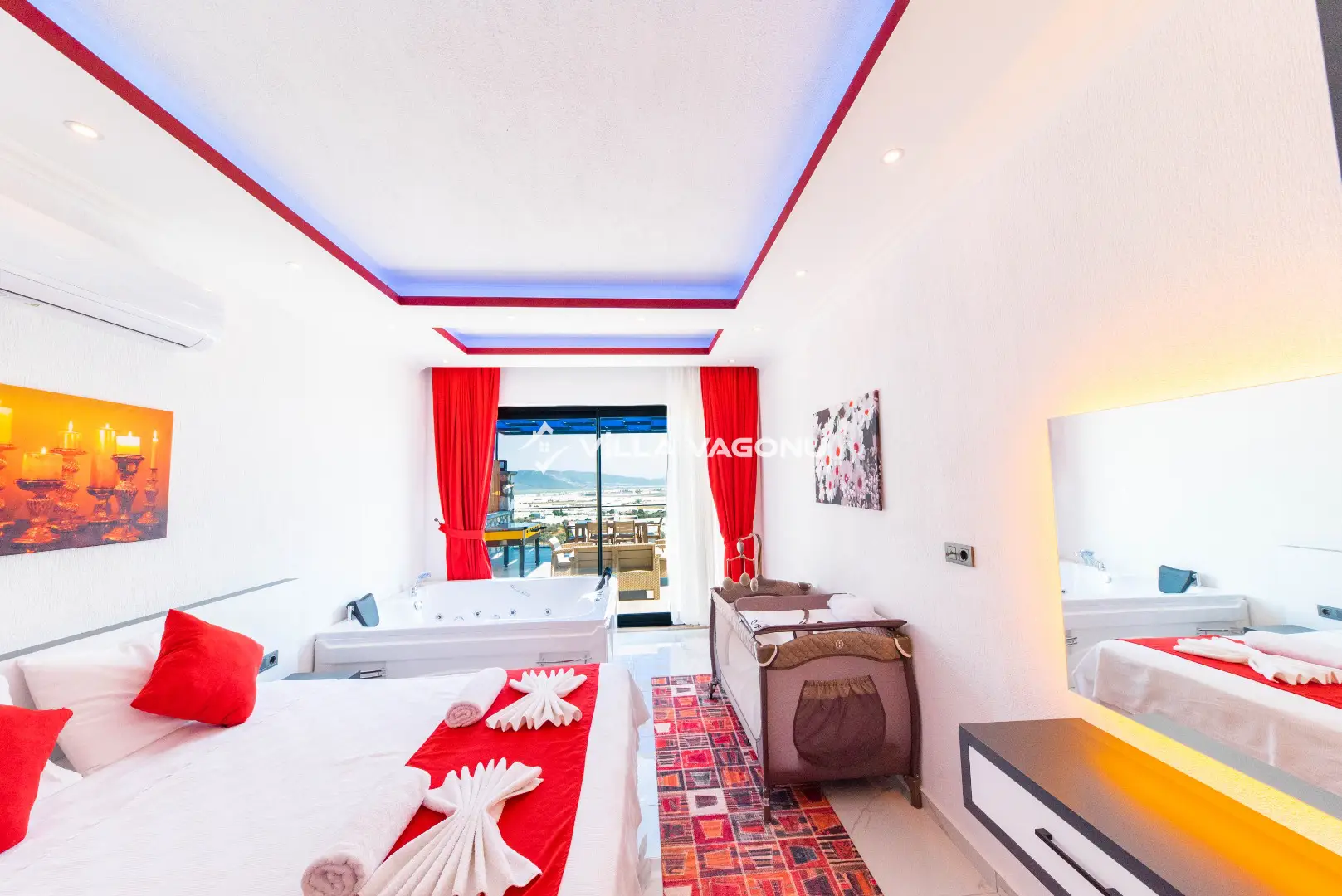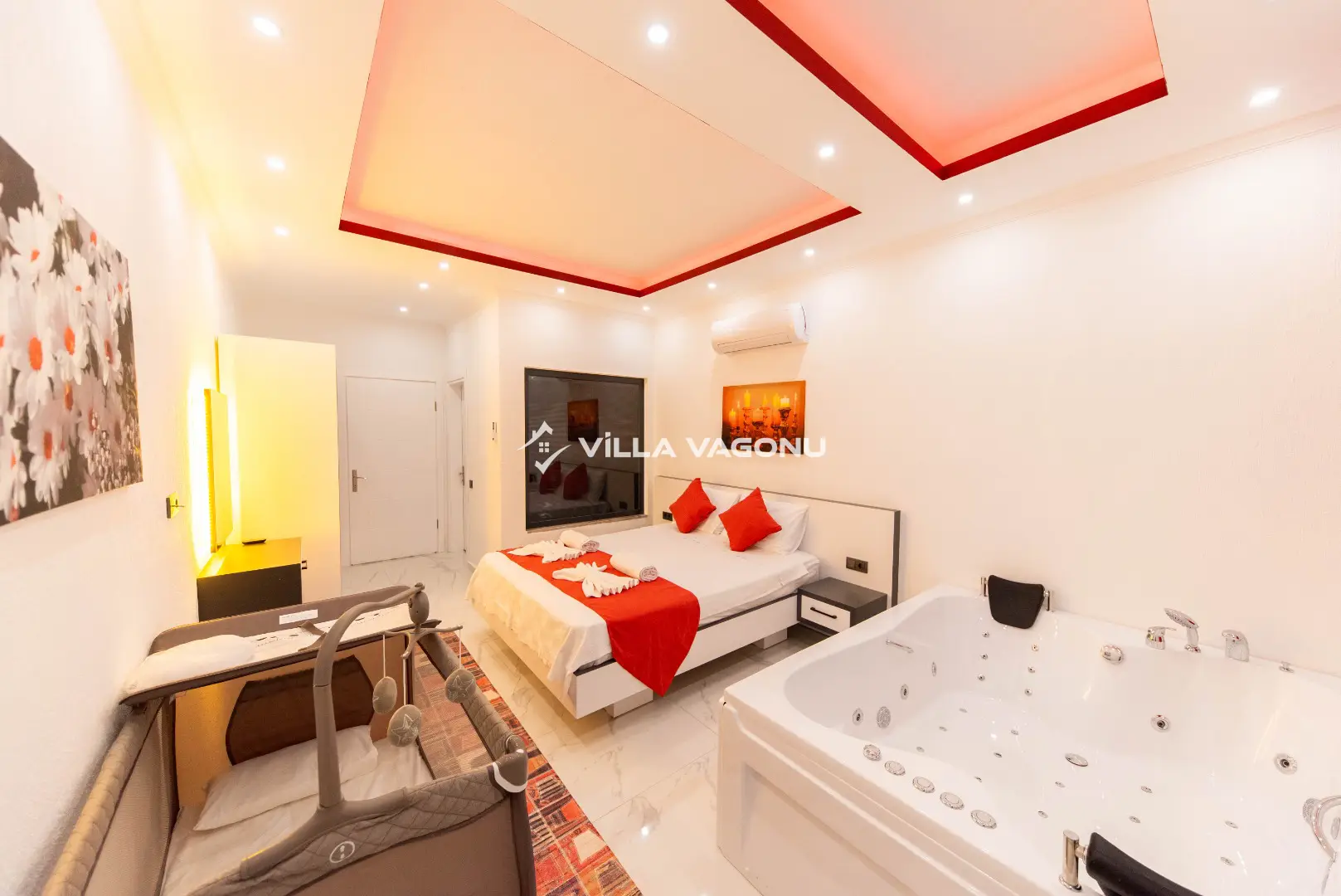 Villamızda kapasiteye uygun mobilyalar, ihtiyacınız olan tüm araç-gereçleri barındıran Amerikan tarzda mutfak, 2 yatak odasında da özel banyo/wc bulunmasının yanı sıra ebeveyn yatak odasında jakuzi de bulunmaktadır. İkinci yatak odasında bir çift kişilik yatak ve bir tek kişilik yatak bulunmaktadır. Müstakil bahçesi ve korunaklı havuz terasında güneşin ve doğanın keyfini çıkarabileceğiniz şezlonglar,oturma alanı, langırt masası ,barbekü alanı mevcuttur.