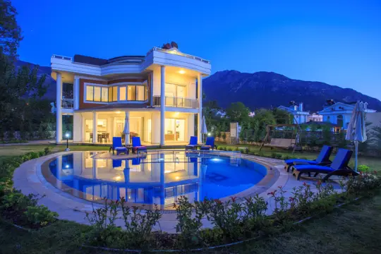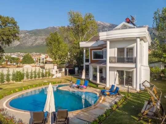 Fethiye, Ölüdeniz/Hisarönü mevkiinde bulunan 4 yatak odalı ve 8 kişilik konaklamaya sahip bir villadır. Muhteşem doğa ve dağ sistemine sahip villa, geniş aileler ve kalabalık gruplar için uygun bir villadır.