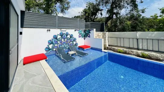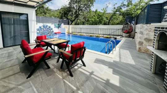 Kalkan Üzümlü mevkiinde bulunan villa 1 yatak odasıyla 2 kişi konaklama kapasitesi sunmaktadır. Çekirdek aileler ve balayı çiftleri için uygundur. Korunaklı havuz ve bahçe alanı mevcuttur.