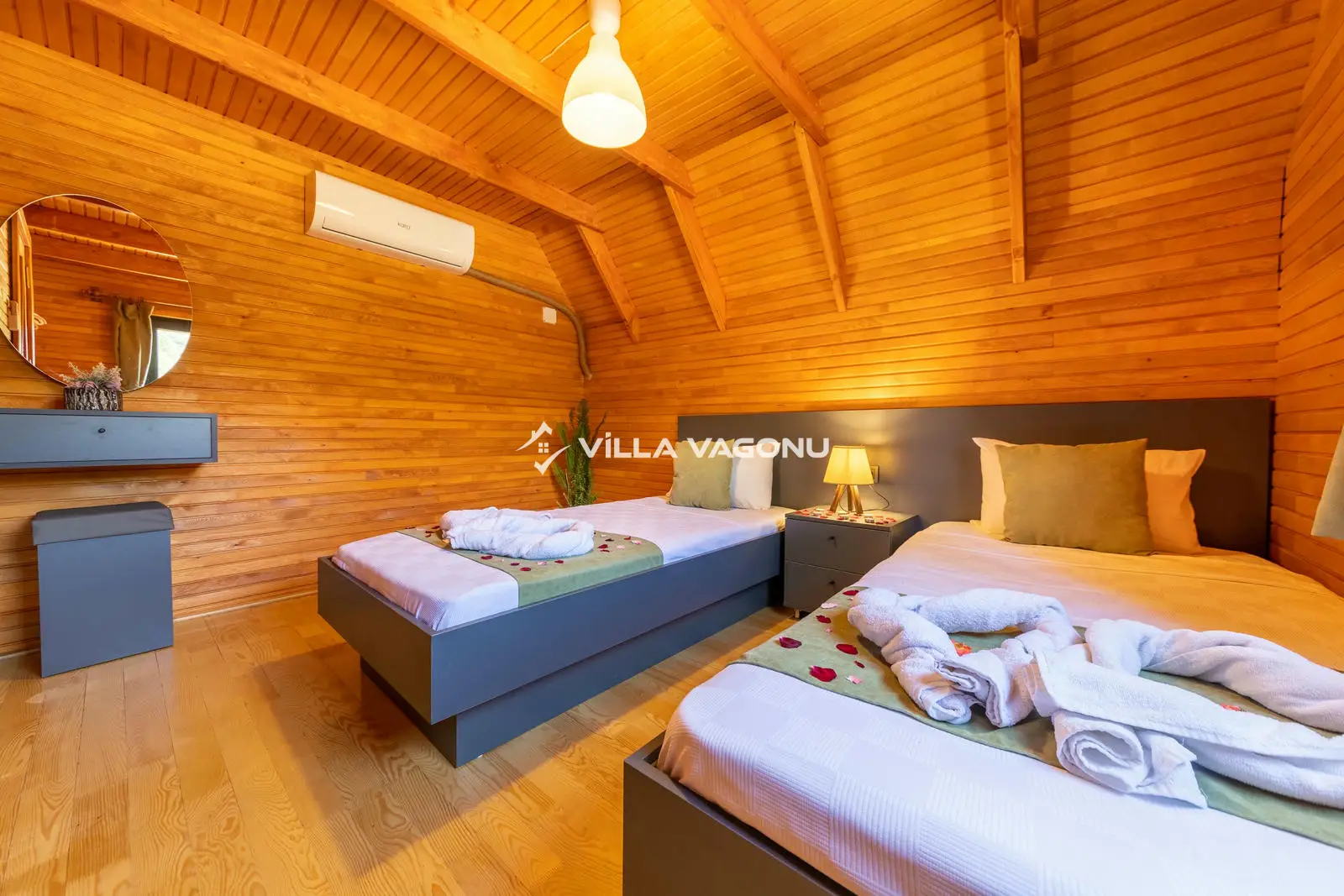 Villamızın özel havuzunda doyasıya yüzebilir ve güneşin keyfini çıkarabilirsiniz. Bahçe alanında kapasiteye uygun şezlong takımı, oturma grubu ve barbekü bulunmaktadır. Havuz terasına açılan konforlu oturma odası ve tam donanımlı açık mutfak, tatilinizi daha da keyifli hale getirecek. Villamızın birinci yatak odasında çift kişilik yatak, ebeveyn banyosu; ikinci yatak odasında ise iki adet tek kişilik yatak ve banyo yer almaktadır.