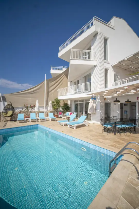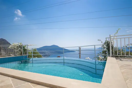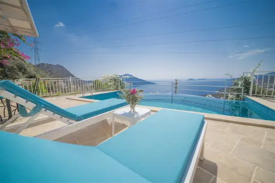 Kalkan Kızıltaş mevkiinde bulunan villa, 5 yatak odasıyla 10 kişilik konaklama kapasitesi sunmaktadır. Deniz ve doğa manzarasına hakim villamız , genişliği ve şıklığı ile göz dolduran villa, kalabalık aile ve arkadaş grupları için uygundur.