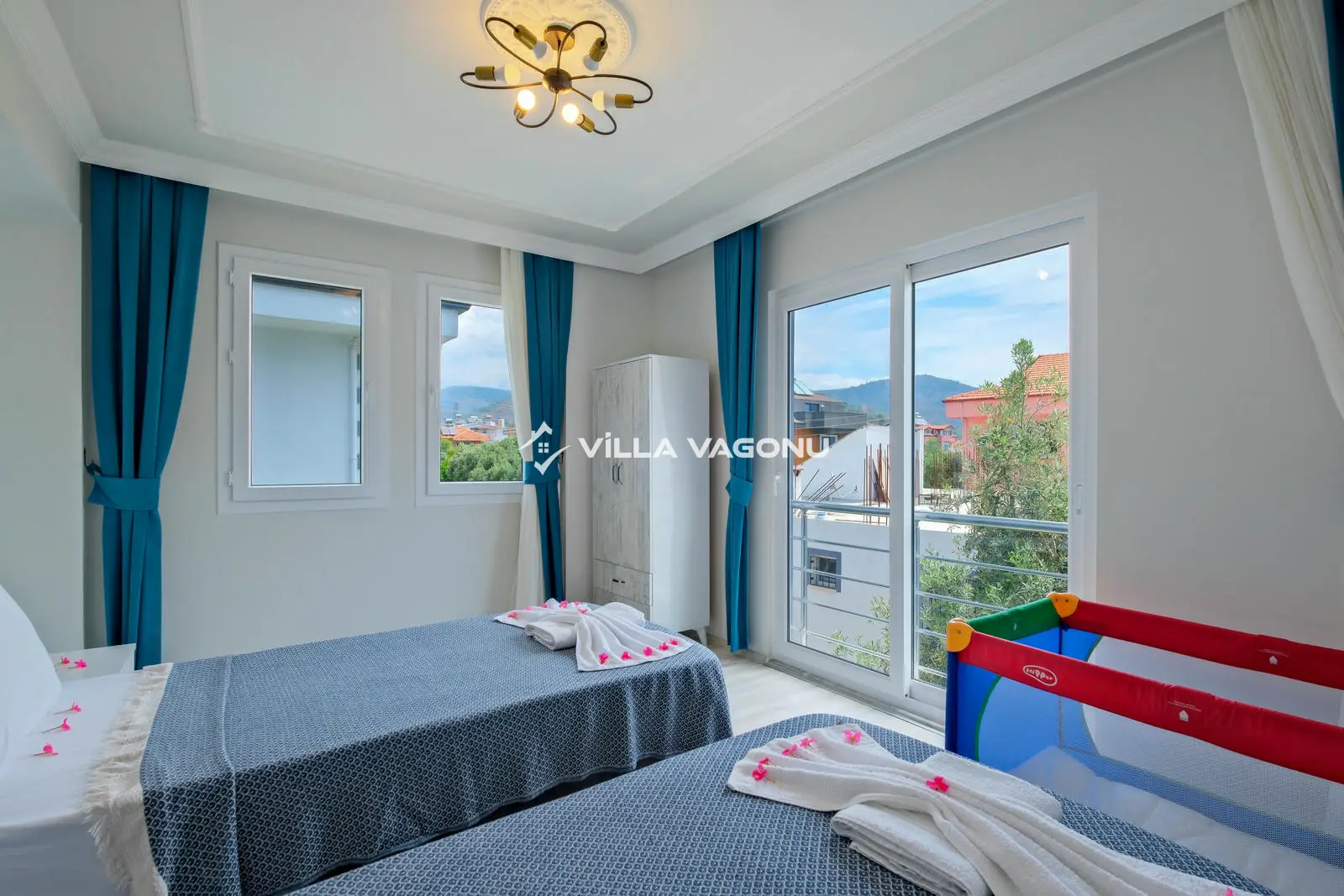 Fethiye Karagedik mevkiinde bulunan villa, 3 yatak odasıyla 6 kişilik konaklama kapasitesi sunmaktadır. Villalar geniş aile ve kalabalık gruplar tarafından sıklıkla tercih edilmektedir.