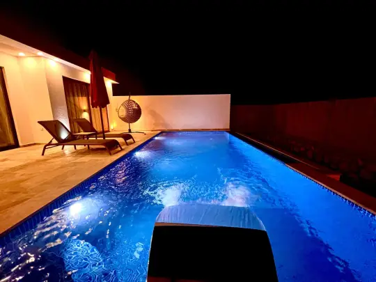 Tatlı ve hoş dekorlarla karşılayan tatil evinin, havuz terasında kapasiteye uygun oturma alanı, uyku takımı, balkon; havuz manzarasına sahip konforlu oturma odası, ihtiyaçlarınızı karşılayacak donanım mutfağı bulunmaktadır. Yatak odası çift kişilik yatak, ebeveyn odası, jakuzi mevcuttur.