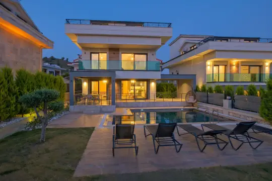 Doğa içinde bulunan villada kapasiteye uygun oturma alanı, şezlong takımı, barbekü alanı, çocuk havuzu ve salıncak; havuz terasına açılan konforlu oturma odası, ihtiyaçlarınızı karşılayacak donanımlı mutfağı bulunmaktadır. Bir yatak odasında çift kişilik yatak, ebeveyn banyosu ve ortak alan da sauna;İkinci ve üçüncü yatak odasında çift kişilik yatak, ebeveyn banyosu;üçüncü yatak odasında iki tek kişilik yatak ve ebeveyn banyosu bulunmaktadır.