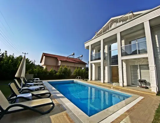 Fethiye Hisarönü mevkiinde bulunan villa, 4 yatak odasıyla 8 kişilik konaklama kapasitesi sunmaktadır. Merkeze ve plaja yakın konumda olup, genişliği ile göz dolduran villa, kalabalık aile ve arkadaş grupları için idealdir.