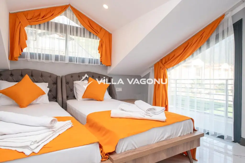 Fethiye Ovacık mevkiinde bulunan villa, 4 yatak odasıyla 8 kişilik konaklama kapasitesi sunmaktadır. Merkeze ve plaja yakın konumda olup, genişliği ile göz dolduran villa, kalabalık aile ve arkadaş grupları için idealdir.
