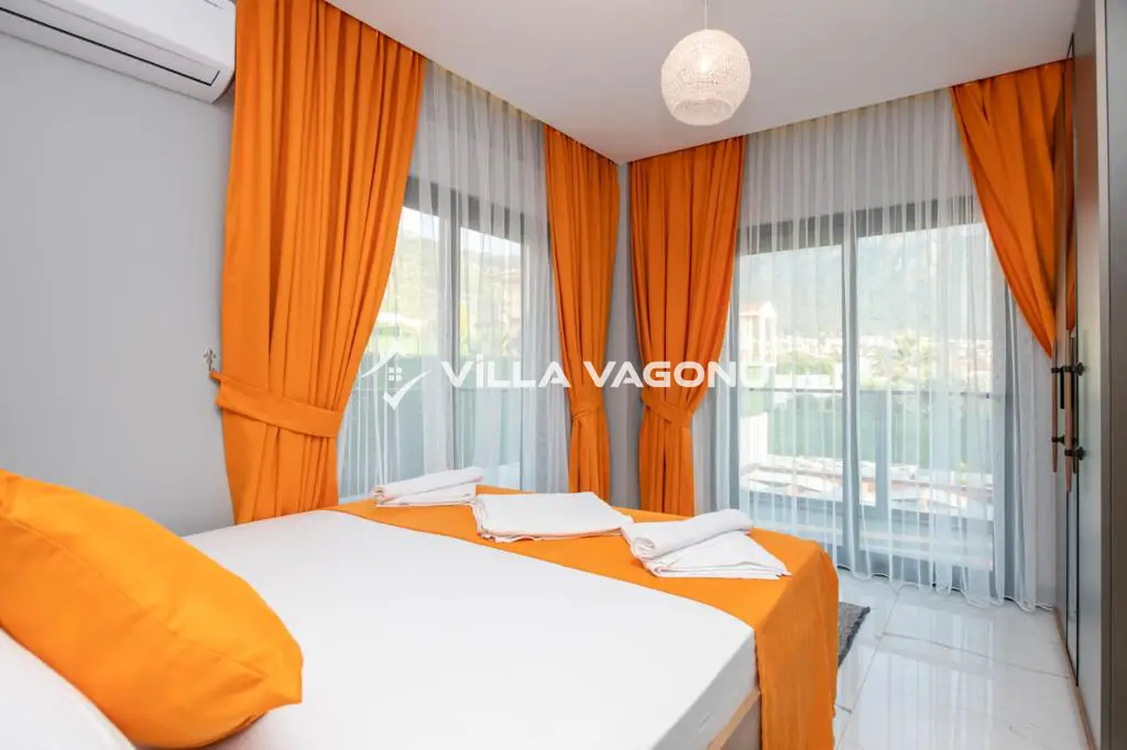 Fethiye Ovacık mevkiinde bulunan villa, 4 yatak odasıyla 8 kişilik konaklama kapasitesi sunmaktadır. Merkeze ve plaja yakın konumda olup, genişliği ile göz dolduran villa, kalabalık aile ve arkadaş grupları için idealdir.