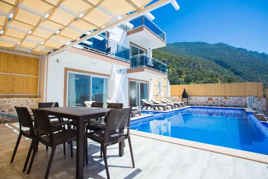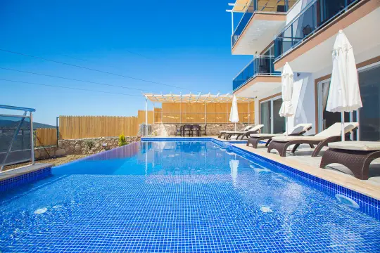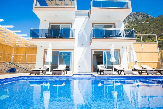 Kalkan'ın Akbel Mevkii'nde bulunan 3 yatak odalı ve 6 kişilik konaklama kapasitesine sahip bir villadır. Masmavi Akdeniz manzarası, merkeze yakın konumu ve jakuzi lüksü ile villa; geniş aileler ve kalabalık arkadaş grupları için uygun bir villadır.