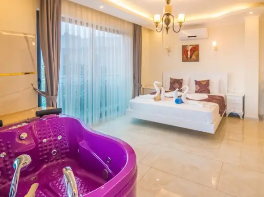 Eşsiz deniz manzarası ve şıklığa sahip villa kapasitesinde uygun mobilyalar, ihtiyacınız olan tüm araç gereçleri barındıran Amerikan tarzda modern mutfak ve 2 adet yatak odası mevcuttur. Konforunuz odaklı tasarlanan villanın tüm yatakları klima ve özel kullanım banyo/wc'si bulunmaktadır. Ayrıca villanın ebeveyn yatak odasında günün yorgunluğunu atmanızı ve tatilin keyfini çıkarmanızı sağlayacak 1 adet jakuzisi de bulunmaktadır.Villamızda bulunan ısıtma sistemili genel oda sayesinde hem %100 korunaklı hem de kış aylarında da muhteşem bir tatil imkanına sahip olabilirsiniz. Villanın korunaklı havuz terası ve kapasiteye uygun şezlong ve şemsiyesi, oturma alanı, yemek masası ve perde alanı bulunmaktadır.