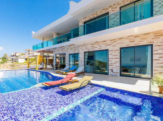 Kalkan, Merkez mevkiinde bulunan 4 yatak odalı ve 8 kişilik konaklamaya sahip lüks bir villadır. Eşsiz deniz manzarası ve korunaklı yapısıyla villa; muhafazakar aileler, kalabalık arkadaş grupları ve geniş aileler için uygun bir villadır.