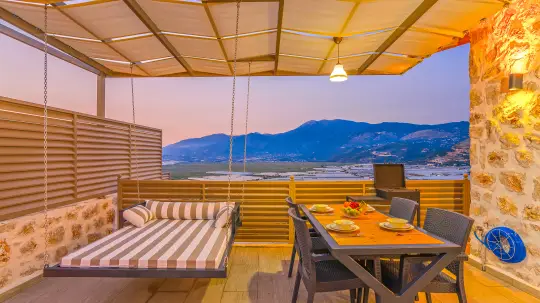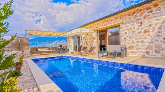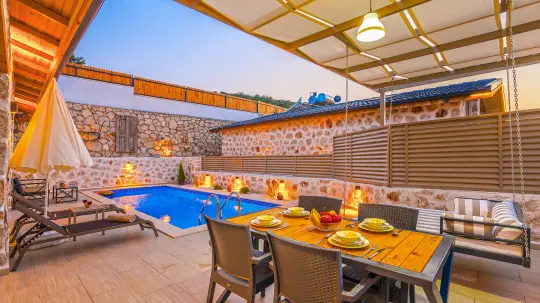 Kalkan,Yeşilköy mevkiinde bulunan 1 yatak odalı ve 2 kişilik konaklama kapasitesine sahip bir balayı villasıdır. Jakuzi konforu ve doğa içerisinde korunaklı yapısı ile villa; muhafazakar çiftler ve balayı çiftleri için uygun bir villadır.