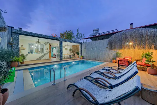 Fethiye Kargı mevkiinde yer alan villa, sizlere huzurlu bir konaklama deneyimi sunuyor. 2 yatak odasıyla 4 kişilik konaklamaya sahip olmayan villamız, balayı çiftleri ve çekirdek odaları için ideal bir tercihtir. Ferah iç mekanları ve zarif tasarımı ile göz dolduran villa, doğanın işleyişine hakimdir.