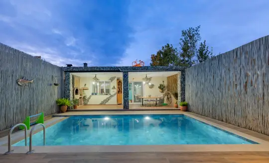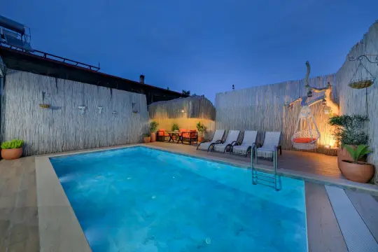 Villamızın özel havuzunda doyasıya yüzebilir ve keyfini çıkarabilir. Bahçe alanında kapasiteye uygun odalar, oturma grubu, çocuk oyun alanı ve çocuk parkı bulunmaktadır. Havuz düzenine uygun konforlu oturma odası ve tam donanımlı açık mutfak, tatilinizi daha da keyifli hale getirmek. Villamızın birinci yatak odası çift kişilik yatak, ebeveyn odası; ikinci yatak odası ise bir adet çift kişilik yatak yer almaktadır. Villamızda 1 ortak banyo olmak üzere 2 banyo bulunmaktadır.