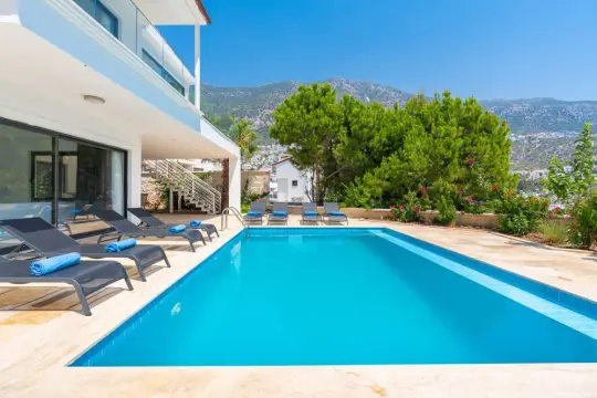 Kalkan, Kaş mevkiinde yer alan 4 yatak odalı ve 8 kişilik konaklamaya sahip bir villadır. Eşsiz Akdeniz bağlantısına sahip olan villamız kalabalık ailelere ve arkadaş grubuna uygun bir villadır.