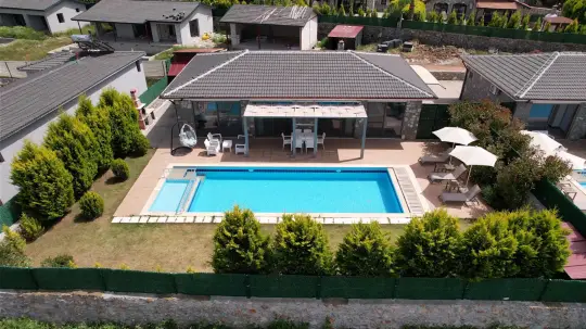 Doğa ile iç içe konumlanan villa bünyesinde kapasiteye uygun mobilyalar, ihtiyacınız olan tüm araç gereçleri barındıran modern mutfak ve 2 adet yatak odası mevcuttur. Konforunuz odaklı tasarlanan villanın tüm yatak odalarında klima ve özel kullanım banyo/wc bulunmaktadır. Villanın ebeveyn yatak odasında günün yorgunluğuunu atmanızı ve tatilin keyfini çıkarmanızı sağlayacak 1 adet jakuzisi de bulunmaktadır. Villanın dışardan görünmmeyen, korunaklı havuz terası ve müstakil bahçesinde yine kapasiteye uygun şezlong ve şemsiye, oturma alanı, yemek masası ve barbekü alanı bulunmaktadır.