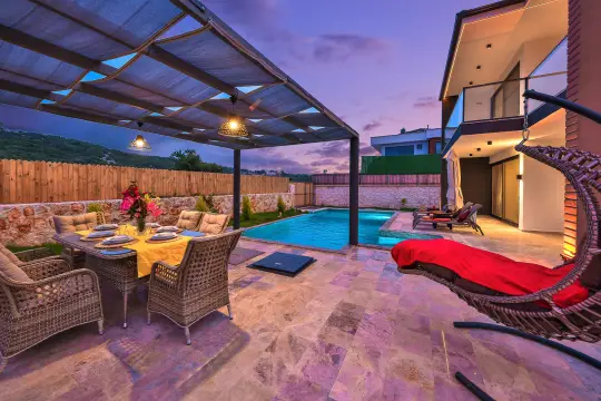 Kaş’ın Ağullu mevkiinde yer alan 3 yatak odalı ve 5 kişilik konaklama kapasitesine sahip bir villadır. Doğa içerisinde, korunaklı havuz terasına sahip villa; muhafazakar aileler, çekirdek aileler ve kalabalık arkadaş grupları için uygun bir villadır.
