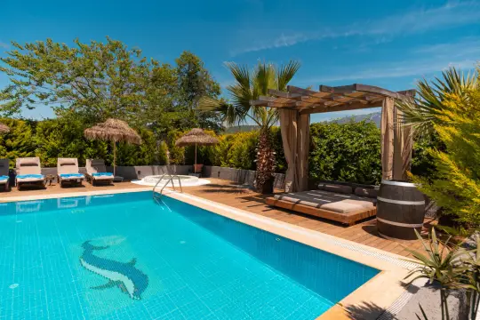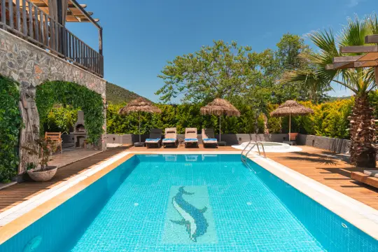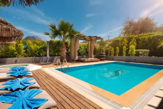 Villamızın özel havuzunda doyasıya yüzebilir ve güneşin keyfini çıkarabilirsiniz. Bahçe alanında kapasiteye uygun şezlong takımı, oturma grubu ve barbekü bulunmaktadır. Havuz terasına açılan konforlu oturma odası ve tam donanımlı açık mutfak, tatilinizi daha da keyifli hale getirecek.