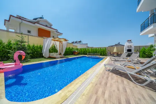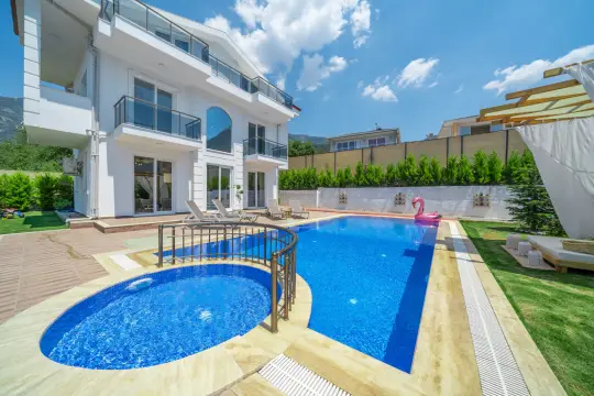 Ovacık'ın yüksek mevkiinde yer alan villa geniş havuz ve bahçe alanıyla ön plana çıkmaktadır. Barbekü alanı özel olarak düşünülerek oluşturulmuş olup yine oldukça şık ve konforlu bir kamelya da havuz yanında konumlandırılmıştır. Modern anlayışla konforu ön planda tutarak rahat bir tatil geçirebilmeniz adına dizayn edilen villanın her odasında özel banyosu yer almaktadır. Çatı katında bulunan yatak odasında ayrıca geniş bir jakuzi de bulunmaktadır. Ölüdeniz'e 10 dakikalık sürüş mesafesinde bulunması da tatilseverler tarafından tercih edilmesinin en önemli sebeplerinden birisi olarak karşımıza çıkmaktadır.