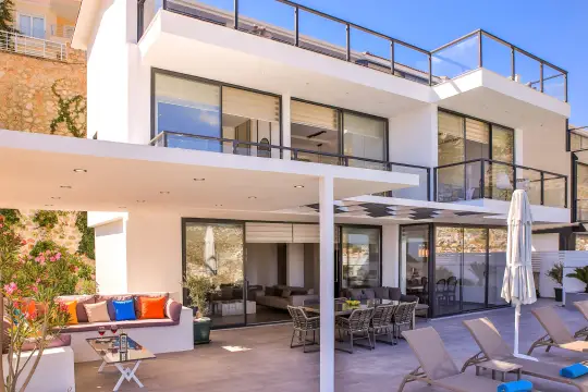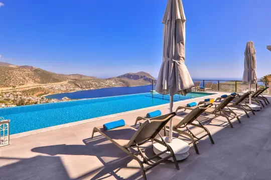 Kalkan Ortaalan mevkiinde yer alan villa, sizlere huzurlu bir konaklama deneyimi sunuyor. 5 yatak odasıyla 10 kişilik konaklama kapasitesine sahip olan villamız, kalabalık aileler ve çekirdek aileler için ideal bir tercihtir. Ferah iç mekanları ve zarif tasarımı ile göz dolduran villa, doğa ve deniz manzarasına hakimdir.