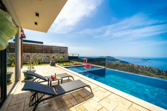 Kalkan Kördere mevkiinde bulunan 3 yatak odalı ve 6 kişilik konaklamaya sahip lüks bir villadır. Eşsiz deniz manzarası ve korunaklı yapısıyla villa; muhafazakar aileler, kalabalık arkadaş grupları ve geniş aileler için uygun bir villadır.