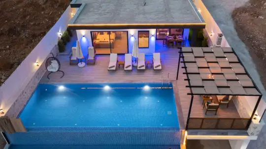 Kalkan, Aklar mevkiinde bulunan, 2 yatak odalı ve 4 kişilik konaklama kapasitesine sahip bir villadır. Korunaklı havuz terası ve müstakil bahçesi ile muhafazakar çift ve aileler, balayı çiftleri ve çekirdek aileler için uygun bir villadır.