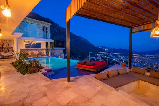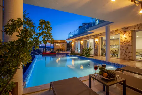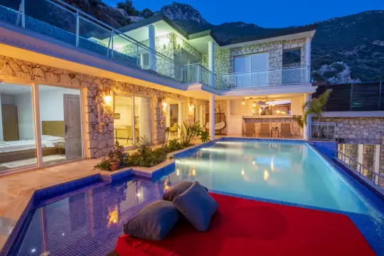 Kalkan 'ın Akbel mevkiinde bulunan, 4 yatak odalı ve 8 kişilik konaklama kapasitesine sahip lüks bir villadır. Eşsiz deniz manzarası, jakuzi lüksü, merkeze ve plaja yakın konumu ile villa; geniş aileler ve kalabalık arkadaş grupları için uygun bir villadır.