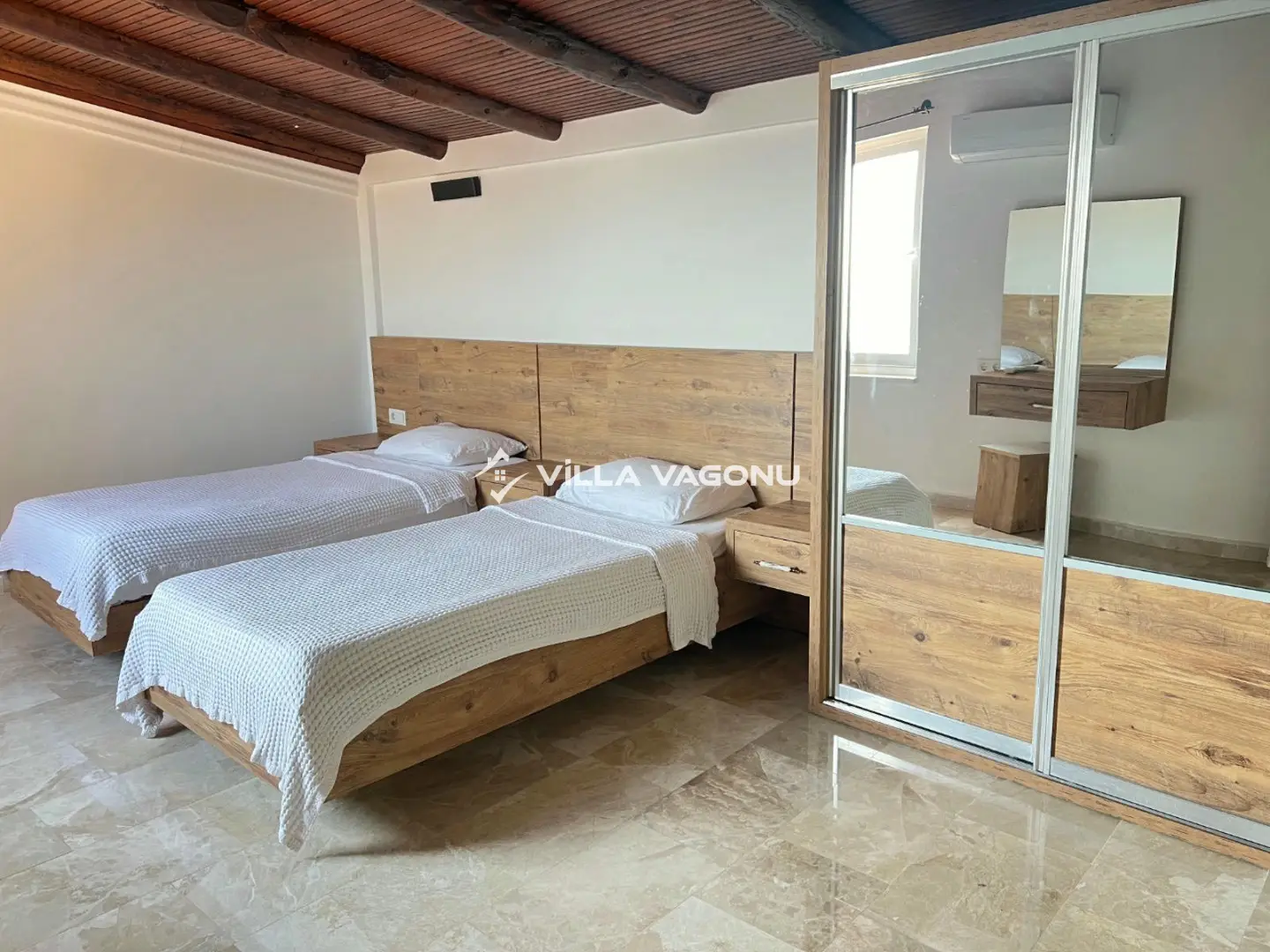 Masmavi manzarası, göz dolduran genişliği ve sunduğu konforu ile villa; size ve sevdiklerinize eşsiz bir tatil imkanı sunuyor!