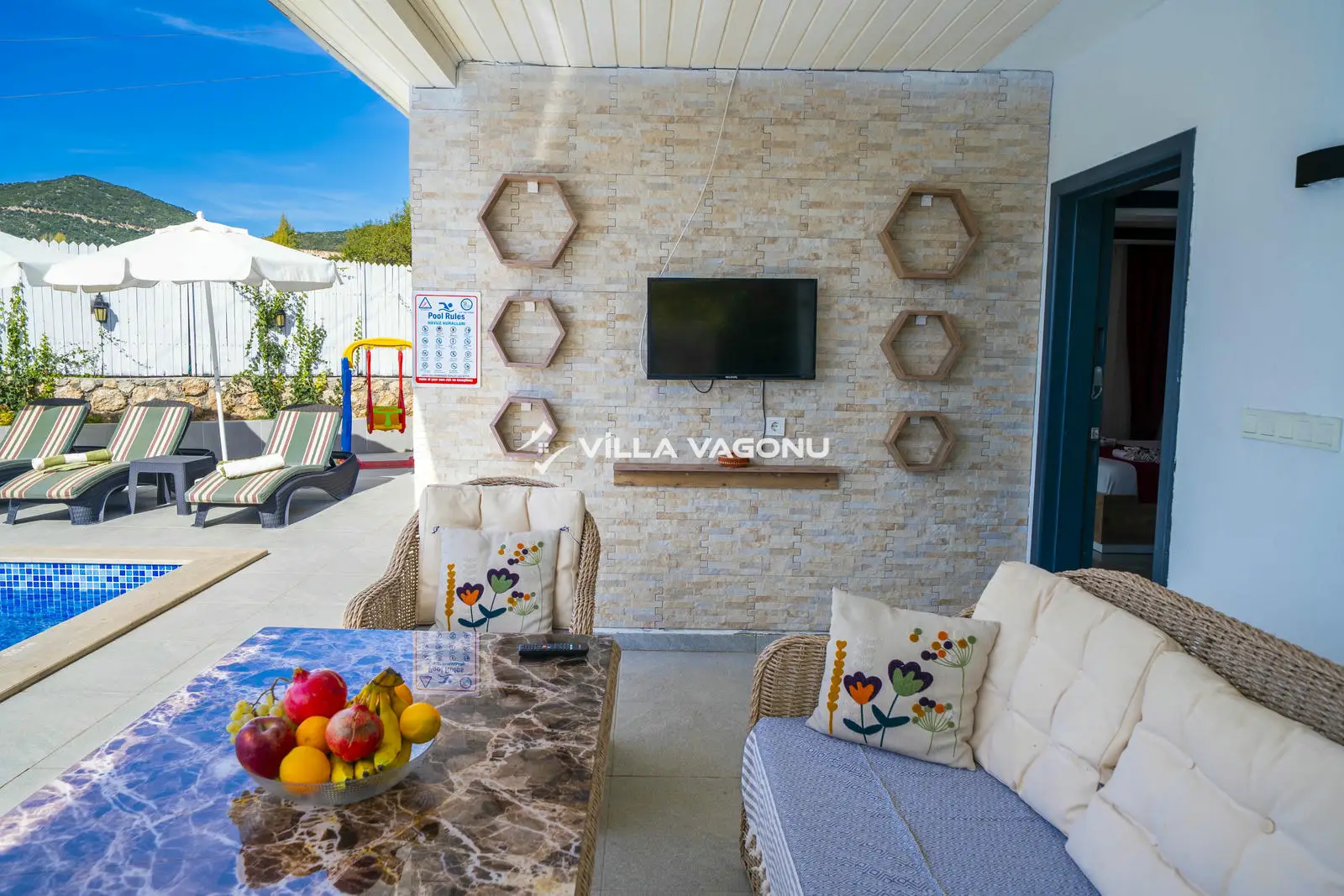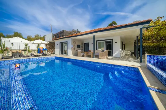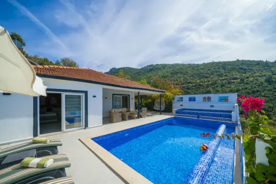Kalkan, Sarıbelen mevkiinde bulunan 2 yatak odalı ve 4 kişilik konaklamaya sahip bir villadır. Korunaklı oda ile muhafazakar çift ve odalar, balayı çiftleri ve hücresel odalar için uygun bir villadır.