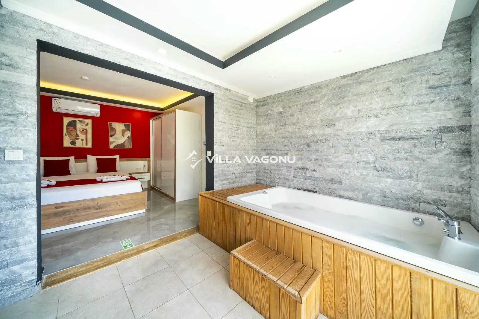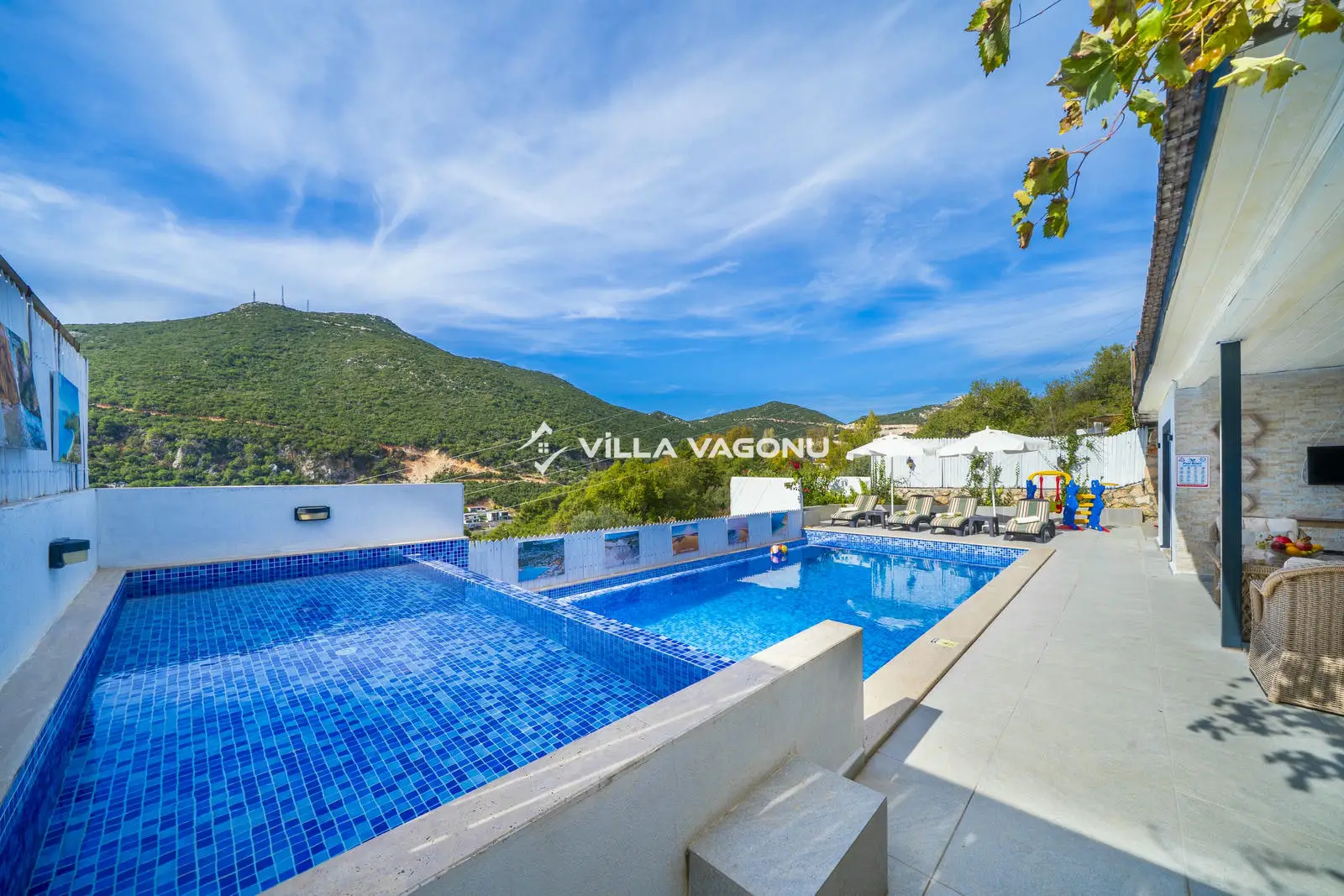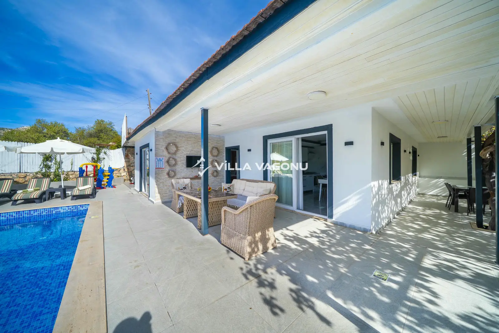 Kapasiteye uygun mobilyalar, ihtiyacınız olan tüm araç ve gereçleri bulunduran Amerikan mutfak, iki yatak odalı, özel banyo/wc ve klima içeren villa, konforunuz odaklı bir depolama birimine sahiptir. Ebeveyn yatak odasında günün yorgunluğunu atabileceğiniz bir de jakuzi mevcuttur. Villanın geniş havuz terasında büyümeleri, kapasiteye uygun oturma grubu ve balkon alanı bulunmaktadır. Ayrıca villada bulunan oyun alanı sayesinde siz yenilenebilir ve doğanın tadını çıkarırken çocuklarınız taşınabilir.