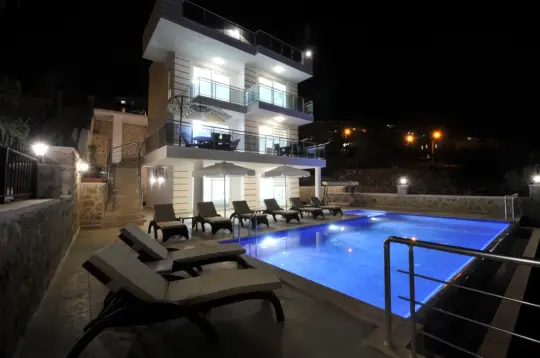 Kalkan,Ortaalan mevkiinde bulunan, 5 odalı ve 10 kişi konaklama kapasitesine sahip deniz manzaralı bir villadır. Geniş aile ve kalabalık arkadaş grupları için uygun bir villadır.