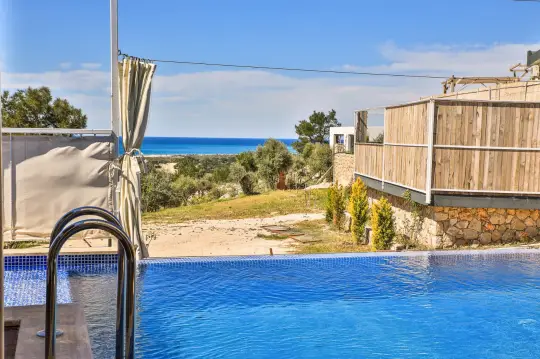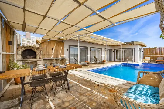 Meşhur, gün batımı seyredebileceğiniz Kum Tepeleri ve plajı ile ünlü Kalkan Patara’da bulunan 2 yatak odalı ve 4 kişilik konaklama kapasitesine sahip bir balayı villasıdır. Doğa içerisinde, korunaklı yapıya sahip villa; muhafazakar çiftler ve balayı çiftleri için ideal bir villadır.
