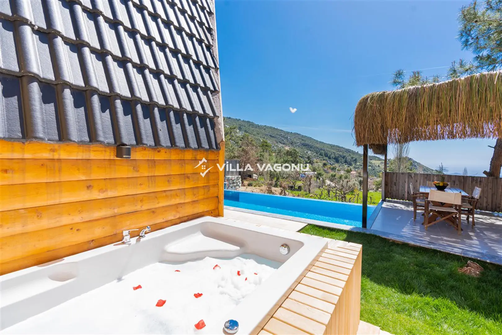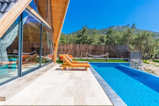 Kalkan İslamlar mevkiinde yer alan villa, sizlere huzurlu bir konaklama deneyimi sunuyor. 1 yatak odasıyla 2 kişilik konaklama kapasitesine sahip olan villamız, balayı çiftleri ve çekirdek aileler için ideal bir tercihtir. Ferah iç mekanları ve zarif tasarımı ile göz dolduran villa, doğa manzarasına hakimdir.