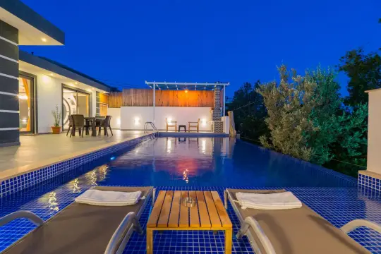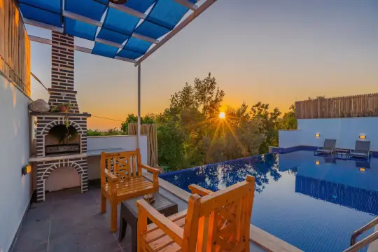 Kalkan Patara mevkiinde bulunan villa 1 yatak odasıyla 2 kişilik konaklama kapasitesi sunmaktadır. Doğa içerisinde korunaklı yapısı ve jakuzi konforu ile villa; muhafazakar çiftler ve balayı çiftleri için uygun bir villadır.