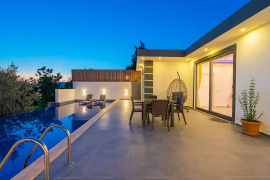 Ayrıca dış özel yüzme havuzuna entegre sığ havuz mevcuttur. Sessizlik ve sakinlik içerisinde huzur dolu bir balayı tatili için siz değerli misafirlerimizi beklemektedir.