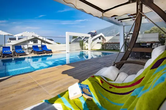 Fethiye, Ölüdeniz/Ovacık mevkiinde bulunan 5 yatak odalı ve 10 kişilik konaklamaya sahip lüks bir villadır. Göz dolduran genişlik ve benzersiz özellikler ile villa; geniş aileler ve kalabalık arkadaş grupları için uygun bir villadır.