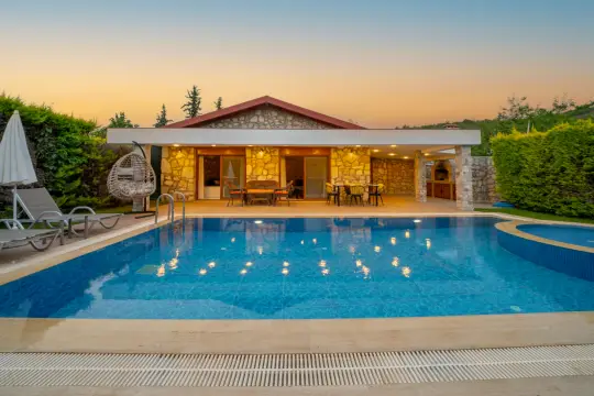 Villamızın özel havuzunda doyasıya yüzebilir ve güneşin keyfini çıkarabilirsiniz. Bahçe alanında kapasiteye uygun şezlong takımı, oturma grubu ve barbekü bulunmaktadır. Havuz terasına açılan konforlu oturma odası ve tam donanımlı açık mutfak, tatilinizi daha da keyifli hale getirecek. Villamızın birinci yatak odasında çift kişilik yatak, ebeveyn banyosu ve jakuzi; ikinci yatak odasında ise iki adet tek kişilik yatak ve banyo yer almaktadır.