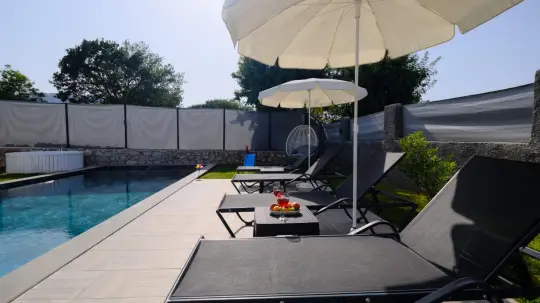 Açık mutfağı ve kendine ait bahçesinde bir havuzu var. Barbekü, masa, sandalyeler, şezlonglar ve şemsiyeler bahçe keyfini sınırsız yaşamanıza imkan tanıyor.