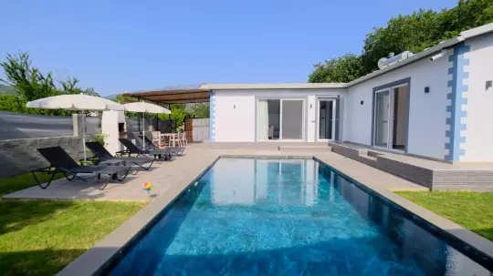 Şirin bahçeli havuzu oldukça korunaklı villamızdır. Müstakil yüzme havuzu dışarıya karşı oldukça korunaklı olduğu için tatilde gözlerden uzak olmak isteyen misafirlerimiz rahat edeceklerdir.