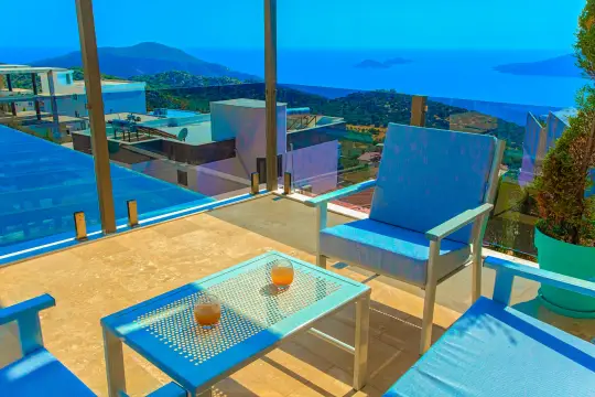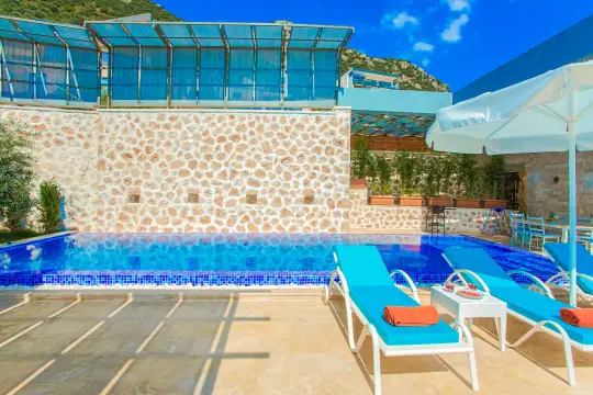 Kalkan Kördere mevkiinde bulunan villa, 3 yatak odasıyla 6 kişilik konaklama kapasitesi sunmaktadır. Doğa ve deniz manzarasına hakim, genişliği ve şıklığı ile göz dolduran villa, çekirdek aile ve arkadaş grupları için idealdir.
