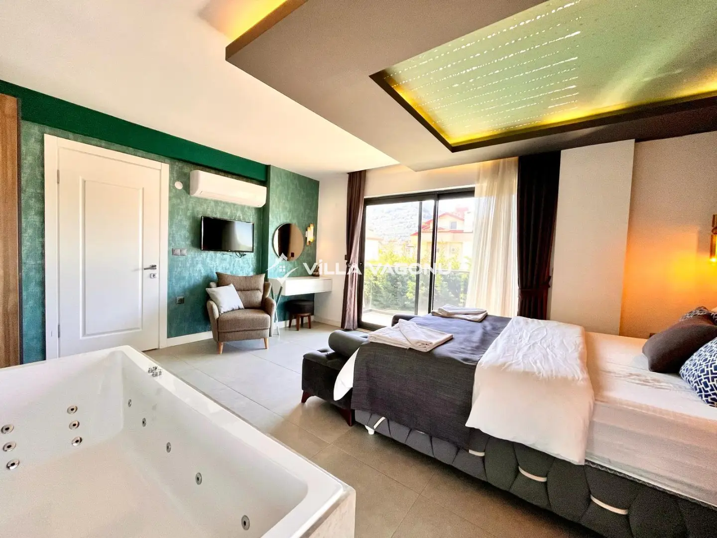 Hisarönü eğlence merkezine yürüme mesafesinde bulunan villamız, Ölüdeniz Plajı’na ise araçla yalnızca 3 dakika uzaklıktadır. Merkezi konumu, modern tasarımı ve lüks olanaklarıyla hem dinlenmek hem de eğlenceli bir tatil geçirmek isteyen misafirler için ideal bir jakuzili kiralık villa alternatifidir.