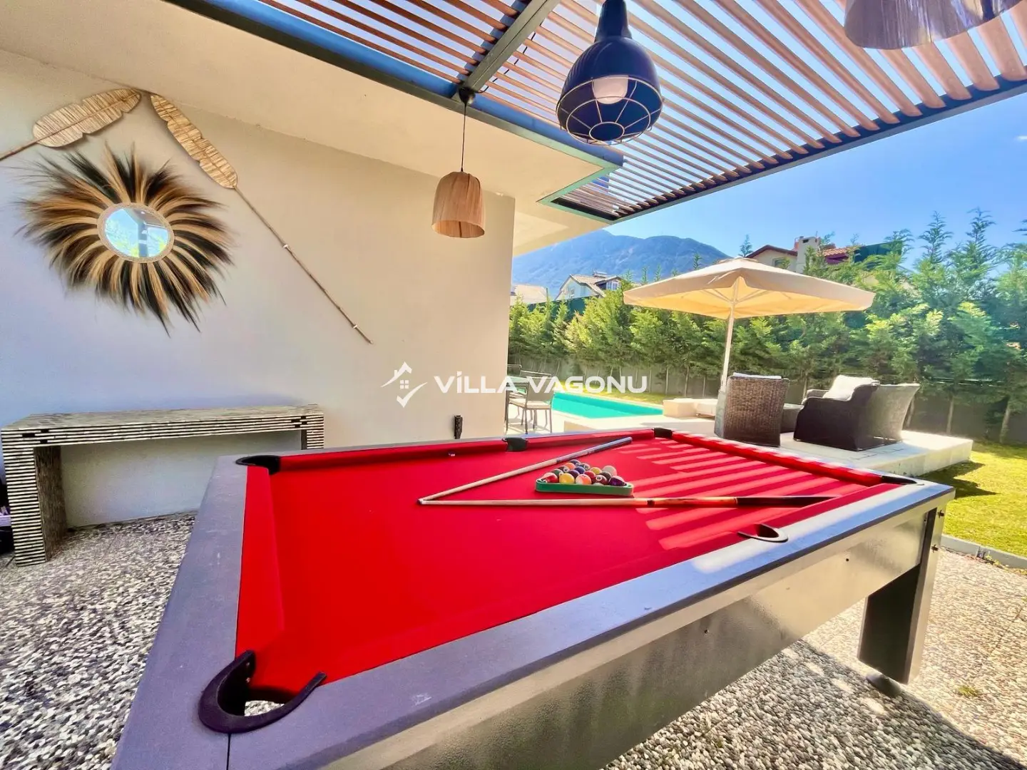 Villa içerisinde bulunan ve PlayStation ya da sinema odası olarak kullanılabilen aktivite odası, sevdiklerinizle birlikte eğlenceli vakit geçirebileceğiniz özel bir alan oluşturmaktadır. Korunaklı ve özel bahçe alanında çocuklar için trambolin, yetişkinler için ise geniş dinlenme alanları bulunmaktadır. Ayrıca evcil hayvan dostu yapısı sayesinde, patili dostlarınızla birlikte rahatça tatil yapabilirsiniz.