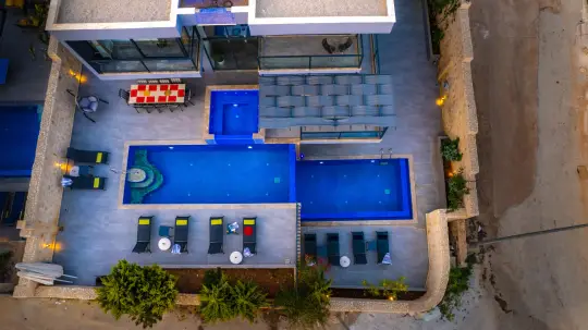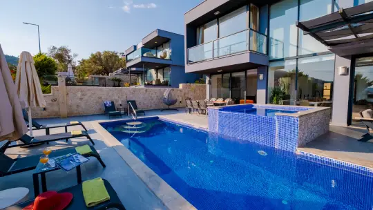 Kalkan Kızıltaş mevkiinde yer alan villa, sizlere huzurlu bir konaklama deneyimi sunuyor. 5 yatak odasıyla 10 kişilik konaklama kapasitesine sahip olan villamız, balayı çiftleri ve kalabalık aileler için ideal bir tercihtir. Ferah iç mekanları ve zarif tasarımı ile göz dolduran villa, doğa ve deniz manzarasına hakimdir.