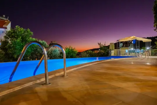 Villamızın özel havuzunda doyasıya yüzebilir ve güneşin keyfini çıkarabilirsiniz. Bahçe alanında kapasiteye uygun şezlong takımı, oturma grubu, masa tenisi ve barbekü bulunmaktadır. Havuz terasına açılan konforlu oturma odası ve tam donanımlı açık mutfak, tatilinizi daha da keyifli hale getirecek. Villamızda çift mutfak bulunmaktadır. Deniz manzarasına hakim villamız çocuk havuzu ve masa tenisi bulunmaktadır.
