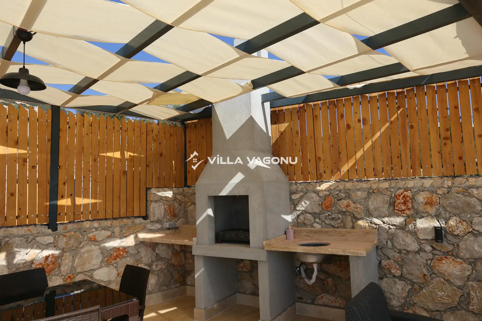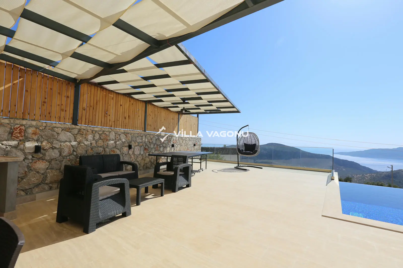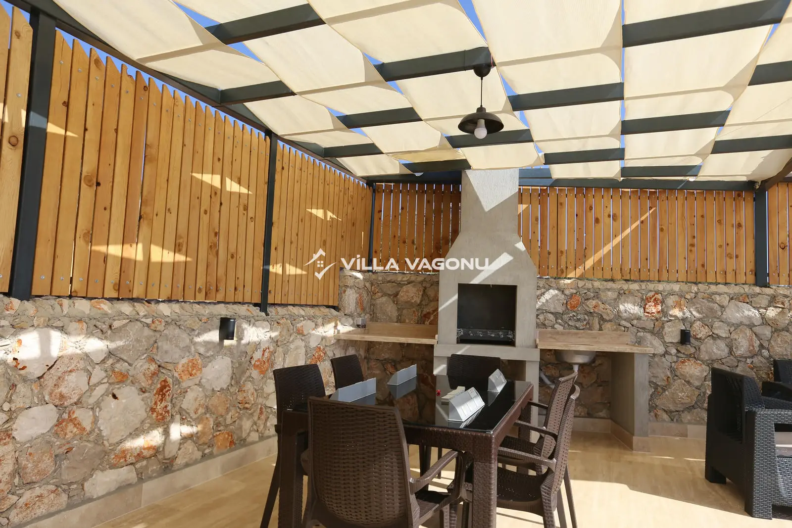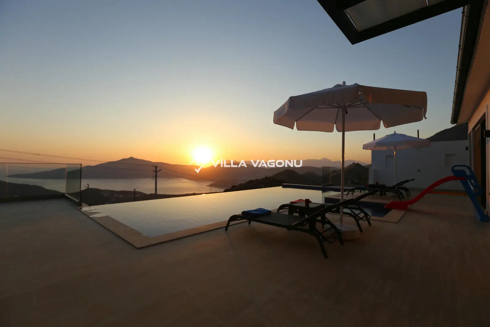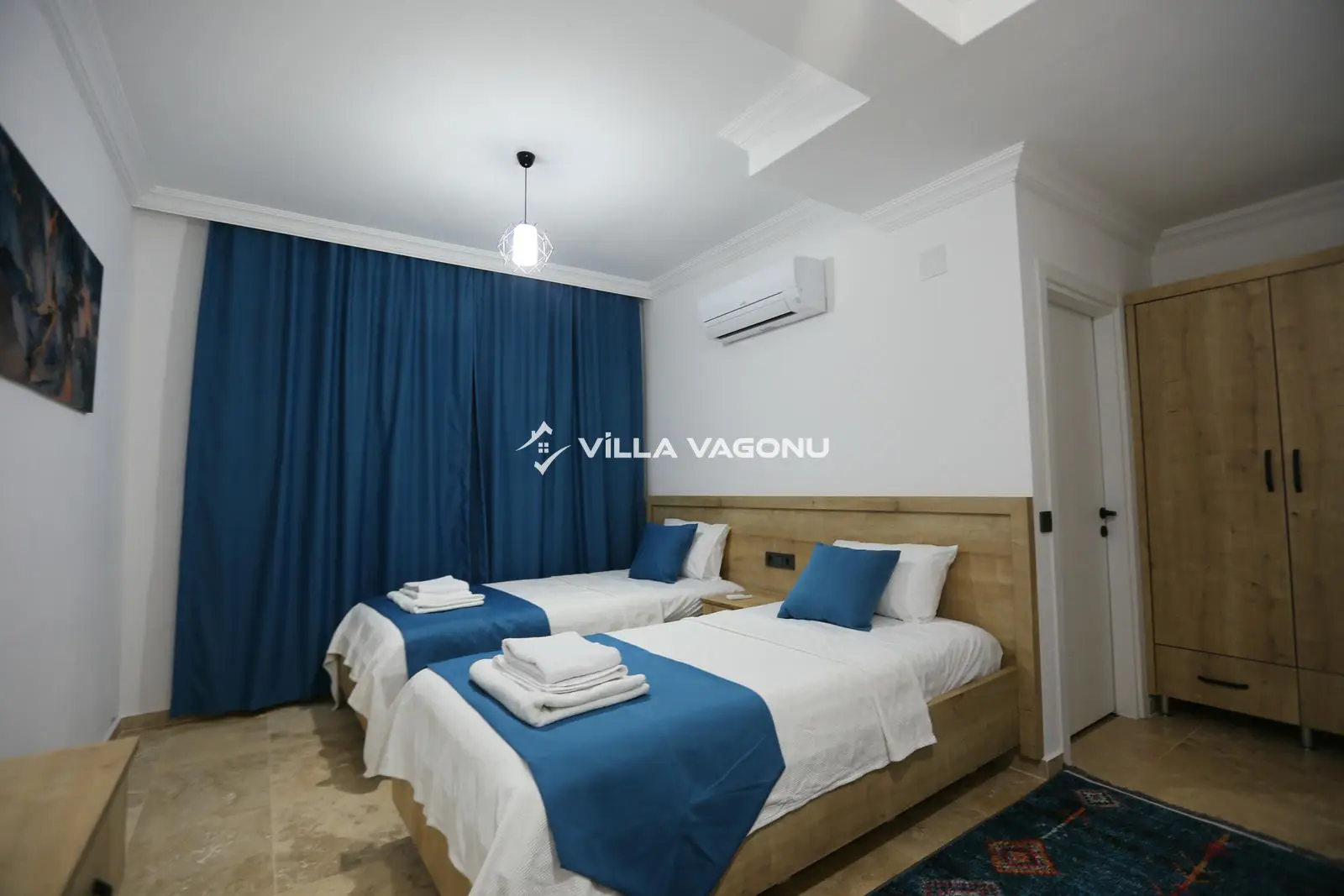 Kalkan Kördere mevkiinde yer alan deniz manzaralı villa, sizlere huzurlu bir konaklama deneyimi sunuyor. 2 yatak odasıyla 4 kişilik konaklama kapasitesine sahip olan villamız, balayı çiftleri ve çekirdek aileler için ideal bir tercihtir. Ferah iç mekanları ve zarif tasarımı ile göz dolduran villa, doğa manzarasına hakimdir.