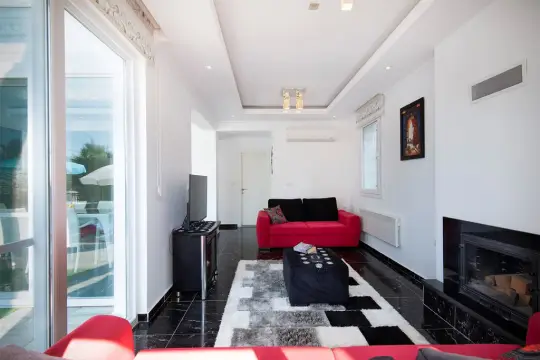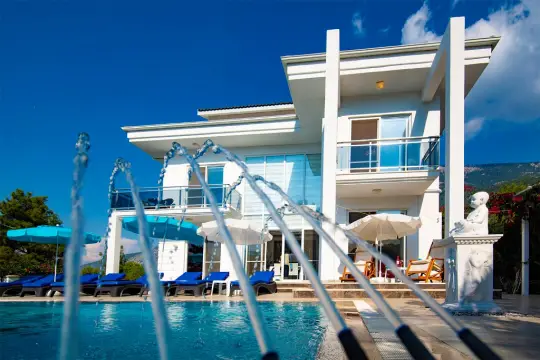 Yemyeşil bir bahçeye sahip, merkezi bulunan villa bünyesinde kapasiteye uygun mobilyalar, ihtiyacınız olan tüm araç-gereçleri barındıran Amerikan tarzda modern mutfak ve 4 adet yatak odası mevcuttur. Konforunuz odaklı tasarlanmış lüks villanın tüm yatakları klima ve özel kullanım banyo/wc'si bulunmaktadır. Villanın geniş, özel havuz alanı ve müstakil alanlarında yine kapasiteye uygun programlar ve şemsiyeler, oturma alanı, yemek masası ve bölme alanı bulunmaktadır.