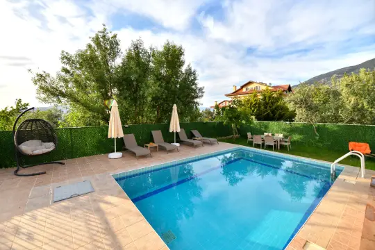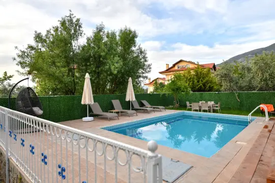 Dünyaca ünlü mavi bayraklı Ölüdeniz Plajı'na yakın mesafede bulunan villa kapasitesi mevcuttur, uygun mobilyalar, ihtiyacı olan tüm araç-gereçleri barındıran Amerikan tarzda modern mutfağı ve 3 adet yatak odası mevcuttur. Konforunuz odaklı tasarlanmış villanın 2 yatak odası 1 adet çift kişilik yatak ve 1 yatak odası 2 adet tekli yatak bulunmaktadır. Villanın korunaklı alanı ve müstakil kapasiteye uygun şezlong ve şemsiyesi, oturma alanı, yemek masası ve perde alanı bulunmaktadır.