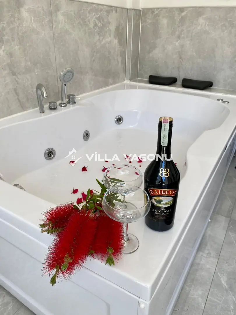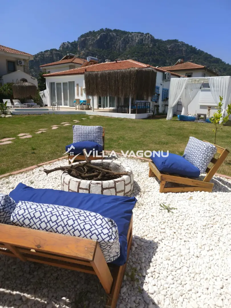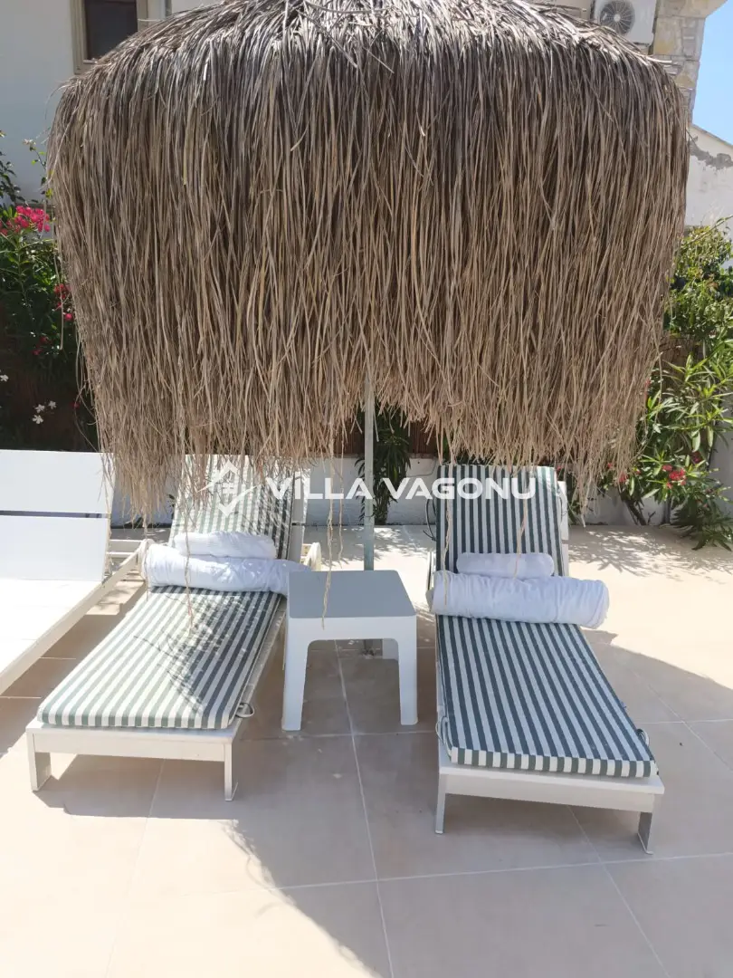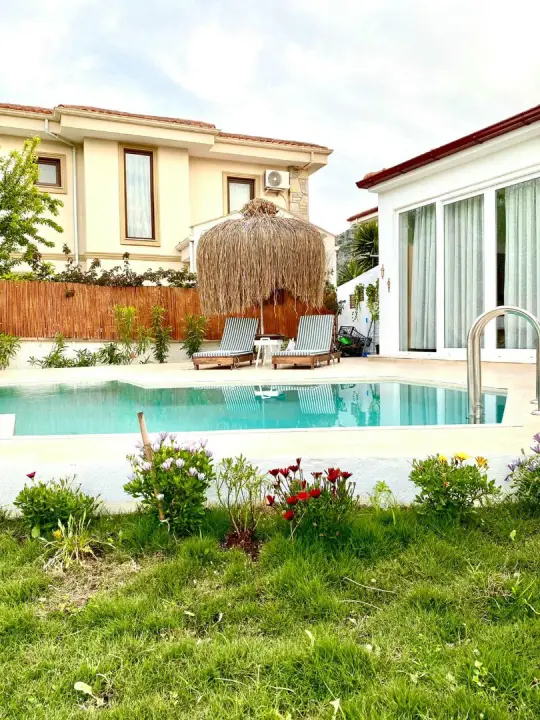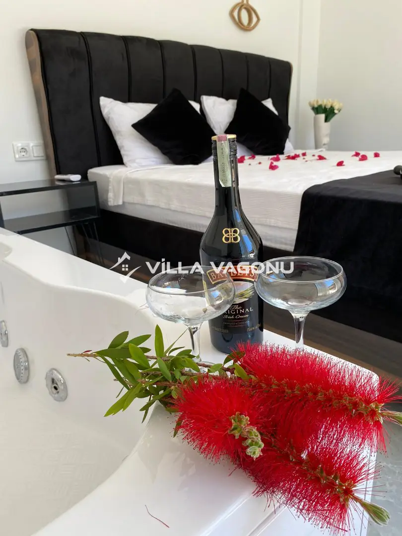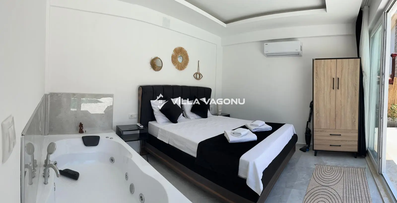 Villamızın özel havuzunda doyasıya yüzebilir ve güneşin keyfini çıkarabilirsiniz. Bahçe alanında kapasiteye uygun şezlong takımı, oturma grubu ve barbekü bulunmaktadır. Havuz terasına açılan konforlu oturma odası ve tam donanımlı açık mutfak, tatilinizi daha da keyifli hale getirecek. Villamızın yatak odasında çift kişilik yatak, ebeveyn banyosu ve jakuzi yer almaktadır.