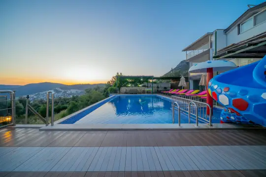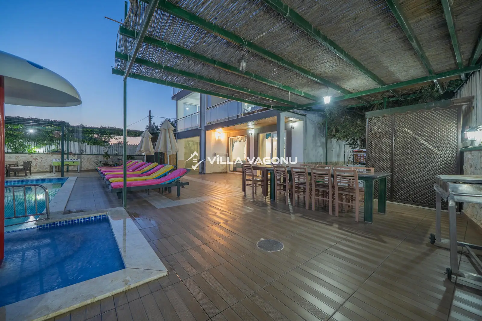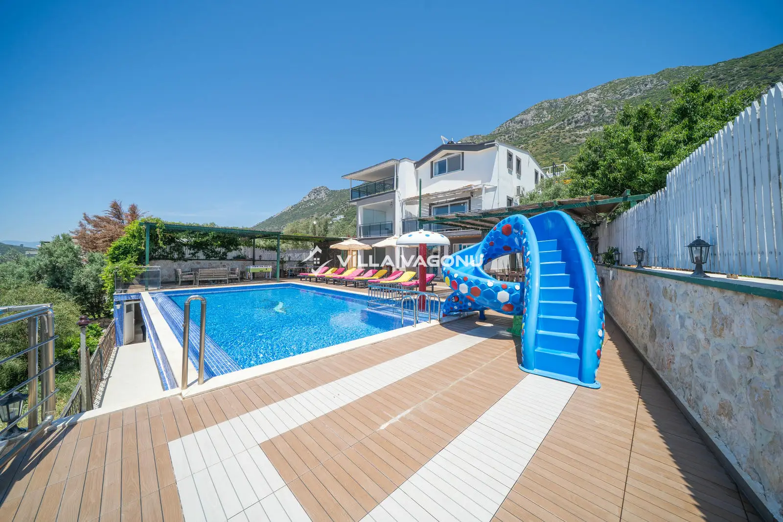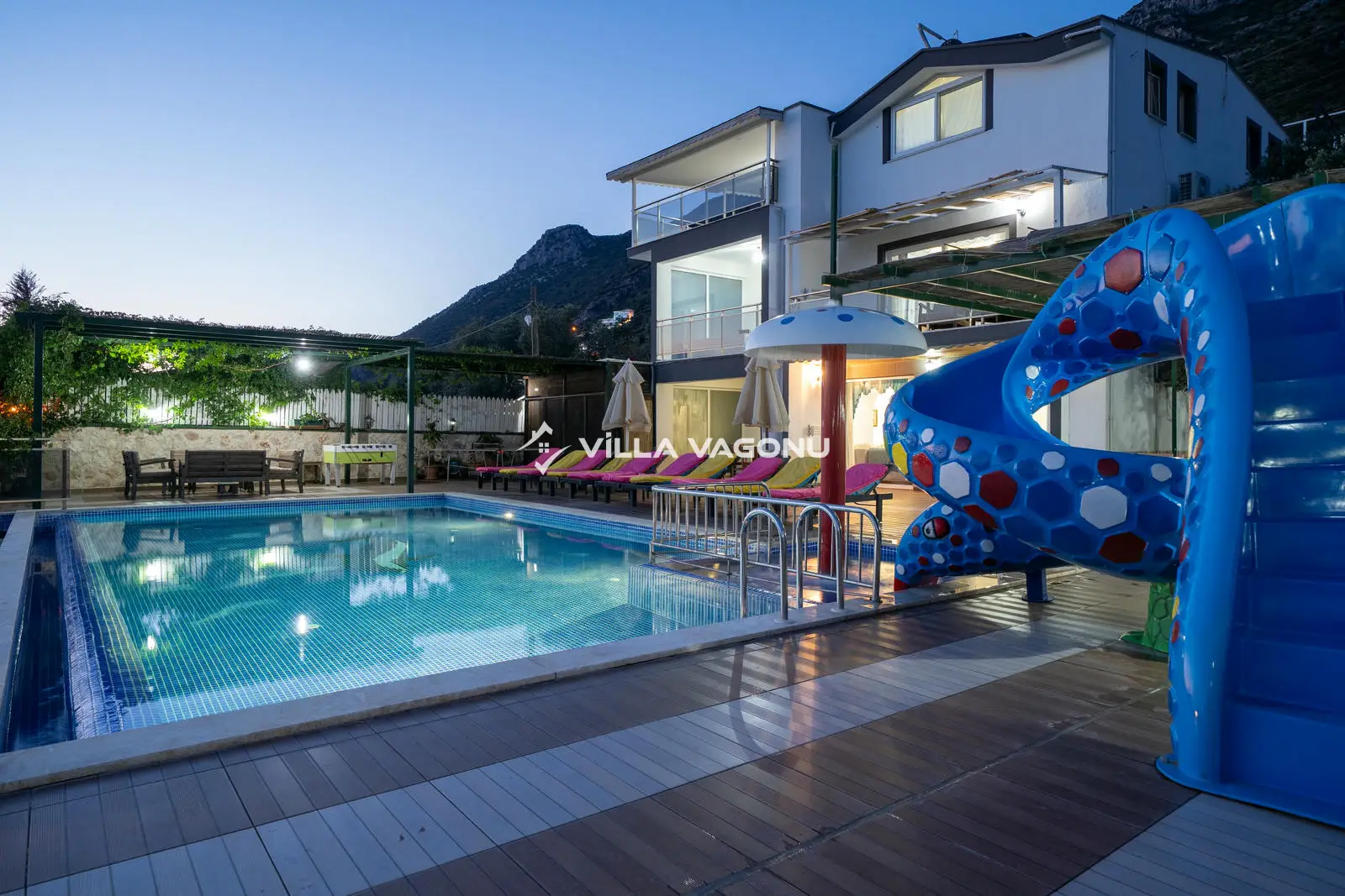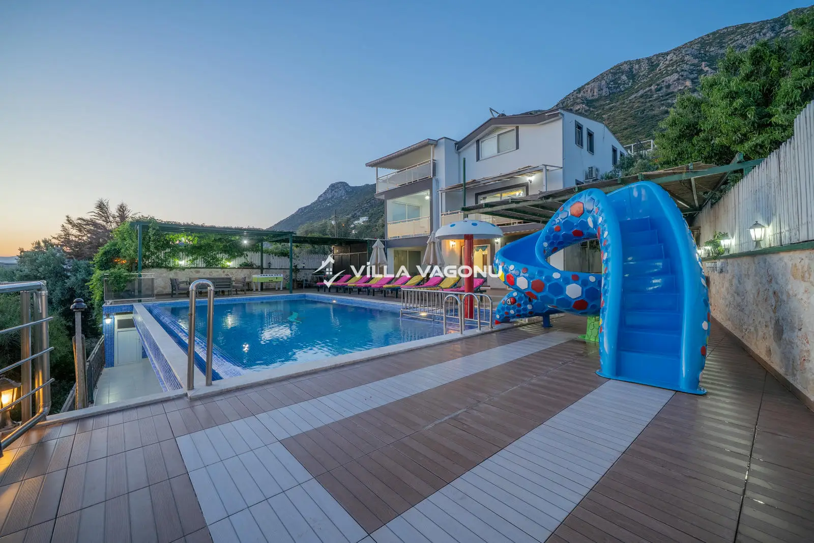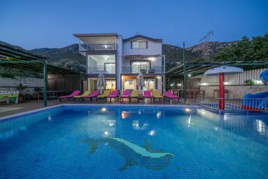Kalkan Kördere mevkiinde bulunan, 7 yatak odalı ve 14 kişilik konaklama kapasitesine sahip bir villadır. Deniz Manzaralı korunaklı havuz terasına sahip villa muhafazakar aileler, kalabalık akadaş grupları ve geniş aileler için uygun bir villadır.