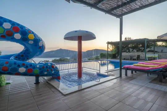 Kalkan'ın merkezi ve deniz manzaralı villalarından biri olan Kördere mevkiinde sessiz, sakin doğa manzarasıyla iç içe huzurlu bir tatil arayan misafirlerimiz için oldukça idealdir.